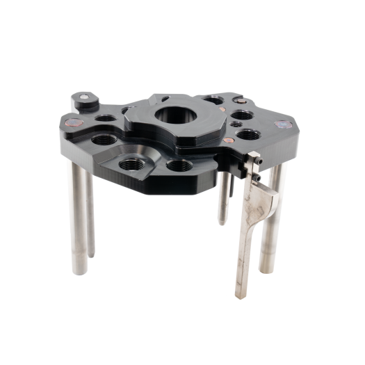 Replacement tool head for Apex 10 and Evo/Rev, for use with an on press case trimmer. Station 6 and 9 are cut away to allow proper access when trimming shorter cases such as 300Blk. Second guide rod, and spring guide rod included as standard.