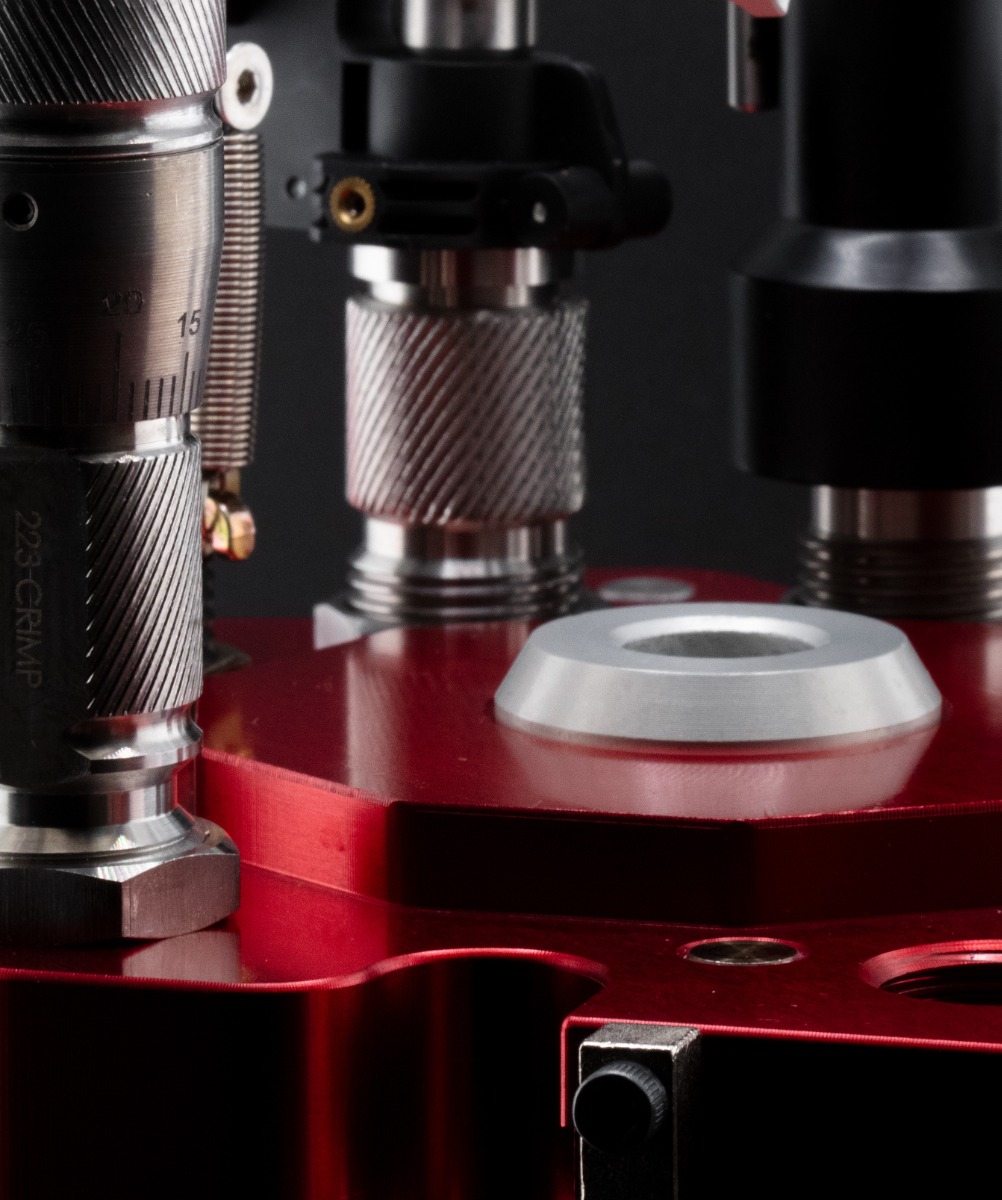 The powder drop die is what interfaces your Mark 7 Mechanical Powder Measure to the press. It is at this station we are dropping a charge of powder into the primed case.